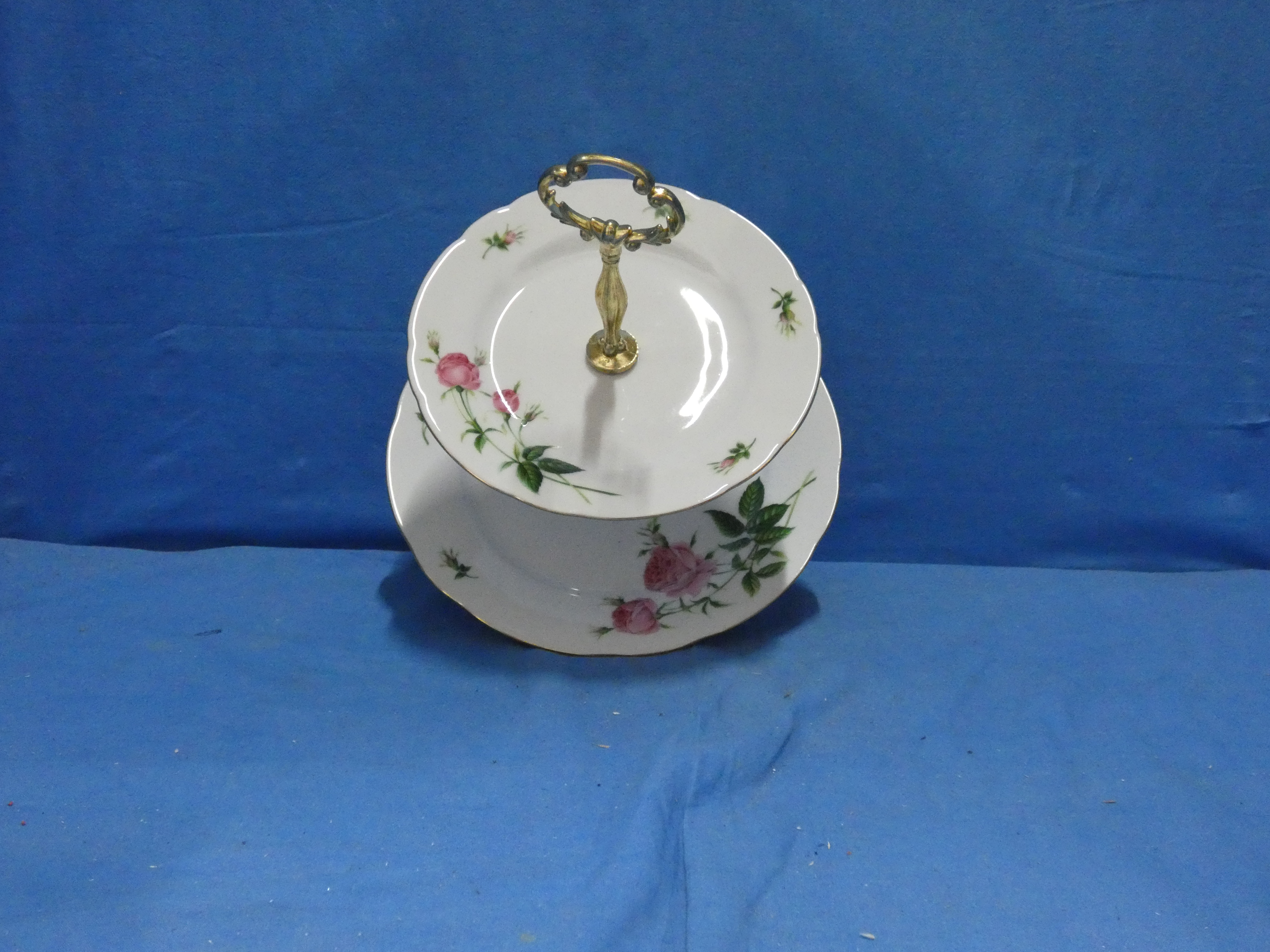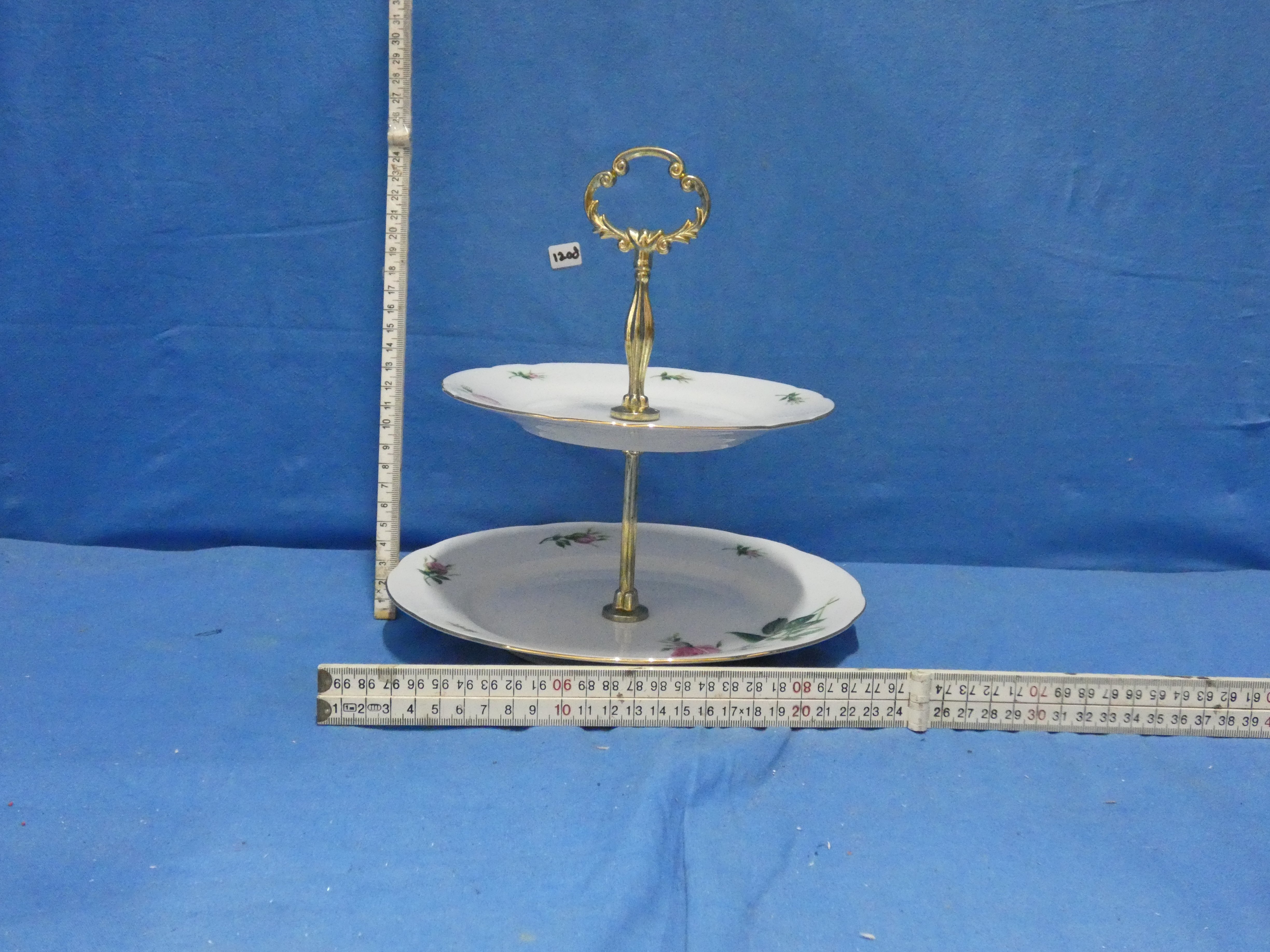 art nr: 1208 vintage porseleinen Etagère met 2 plateau's