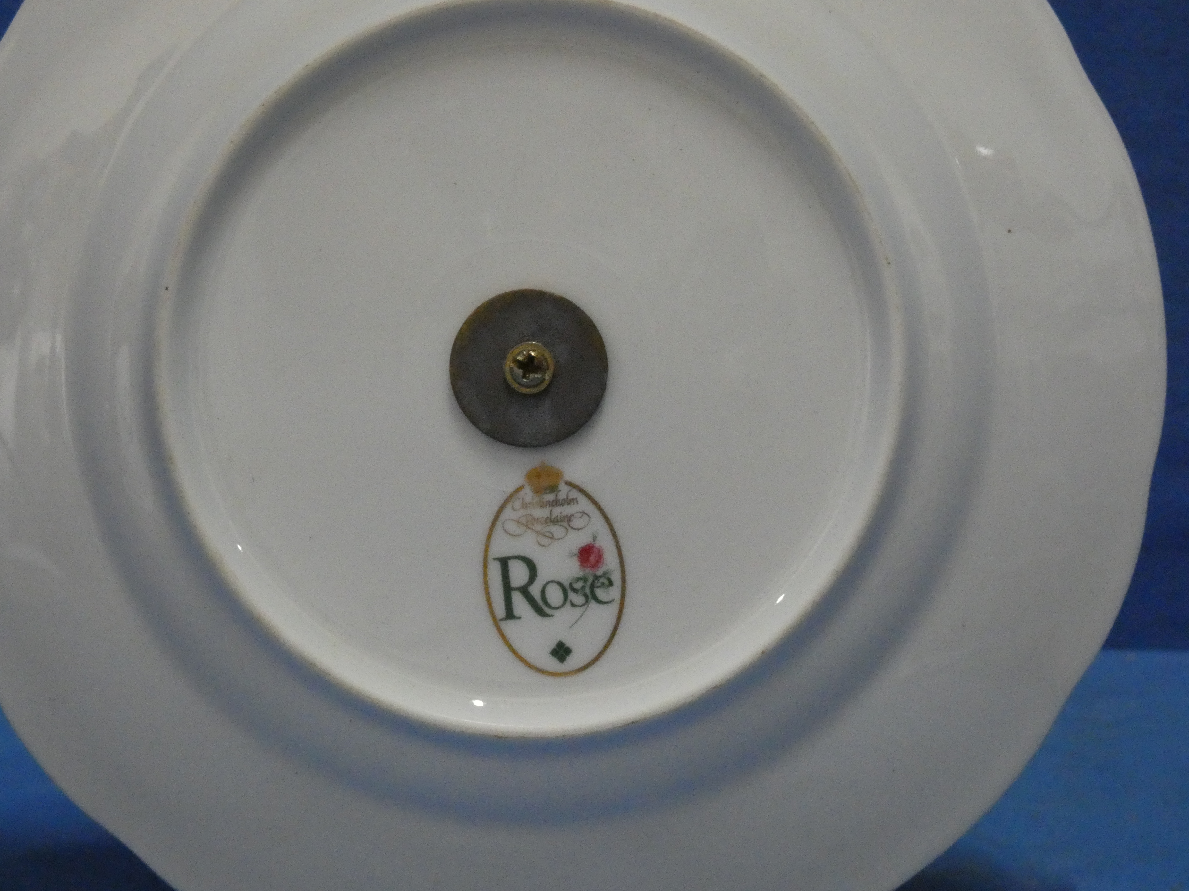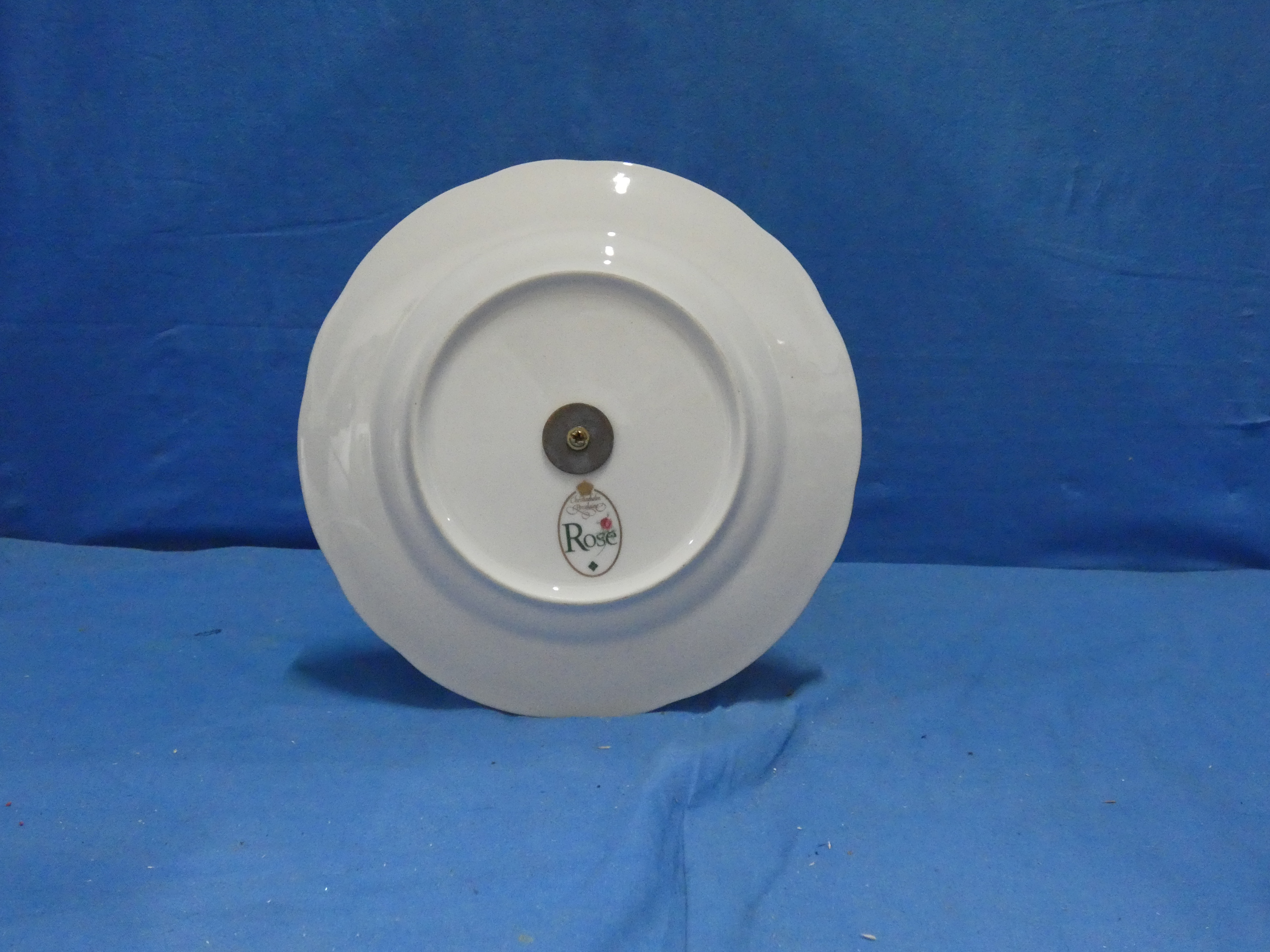 dit artikel is gemaakt van porseleinen borden en een koperen handel