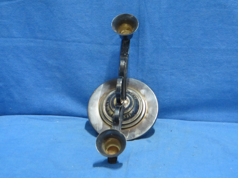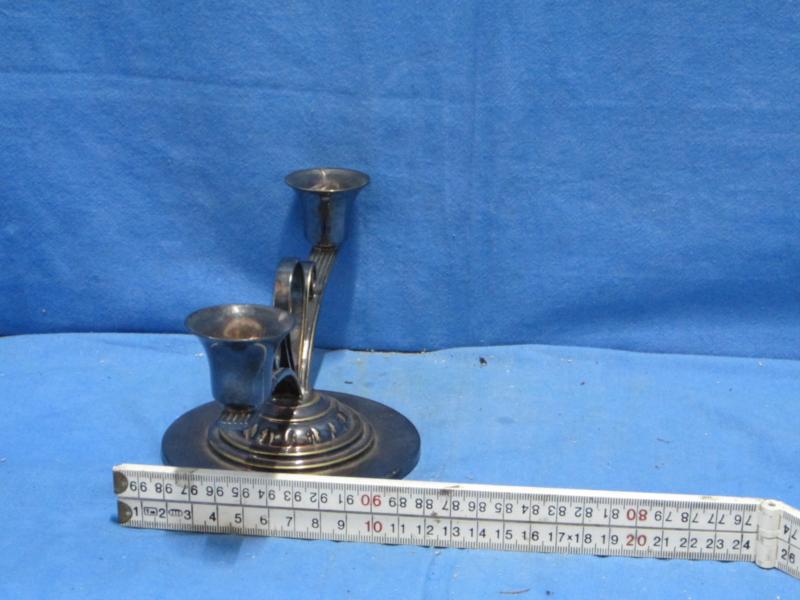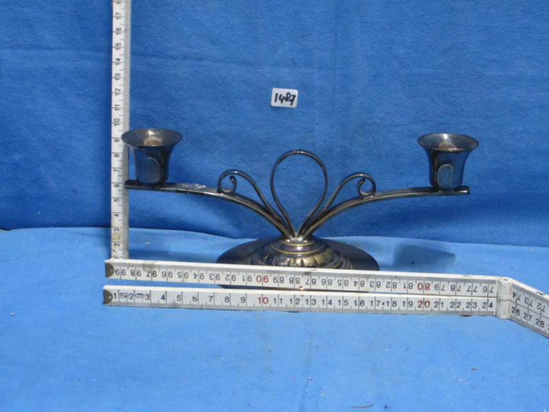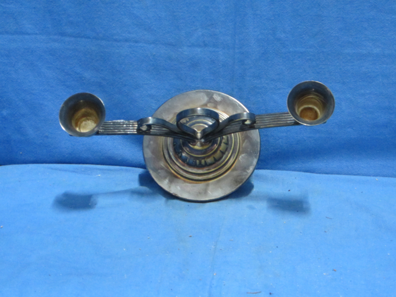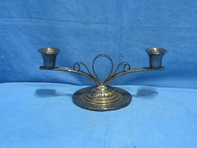 art nr: 1487 antieke verzilverde kaarsen kandelaar