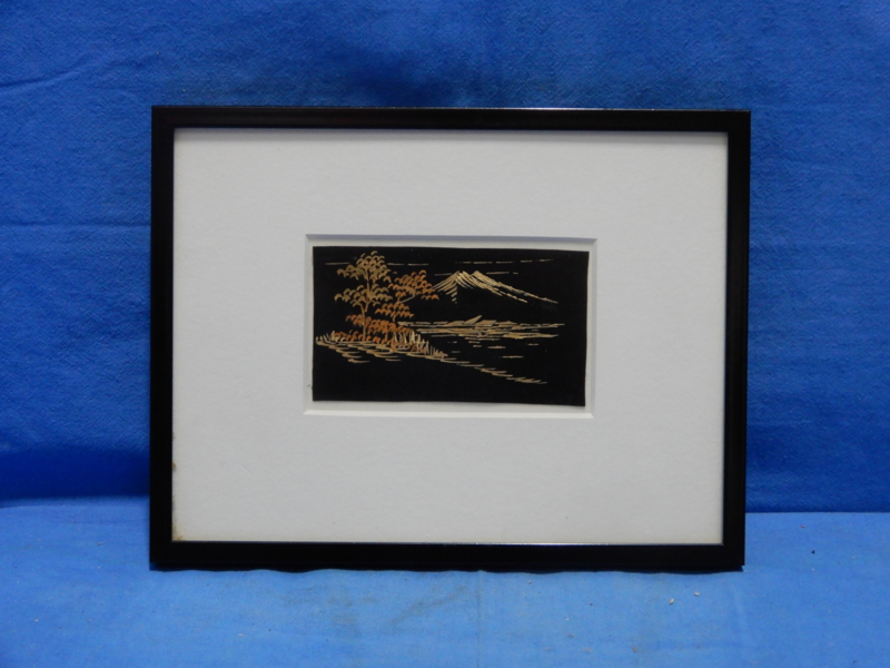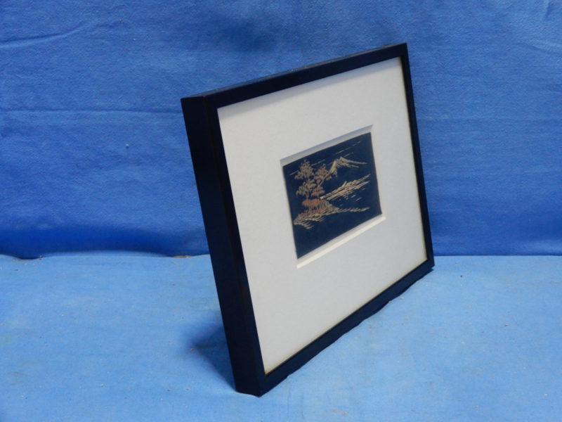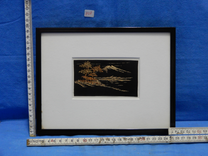 art nr: 728 vintage Japanse schilderijtje met papier snijwerk